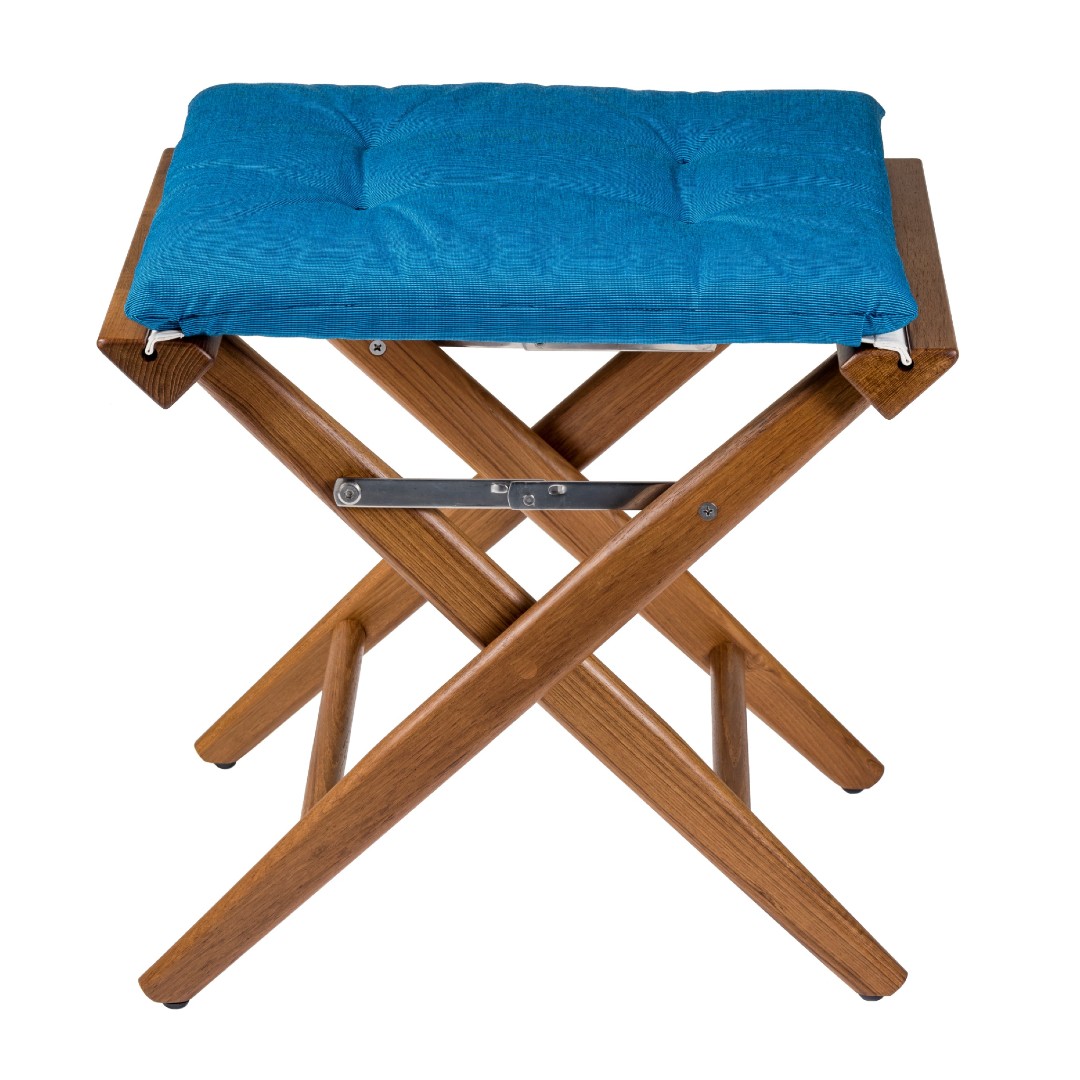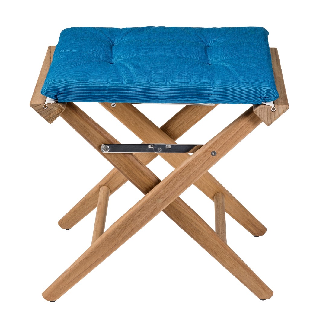 Solid Teak Directors Stool with Forza Blue Cushion