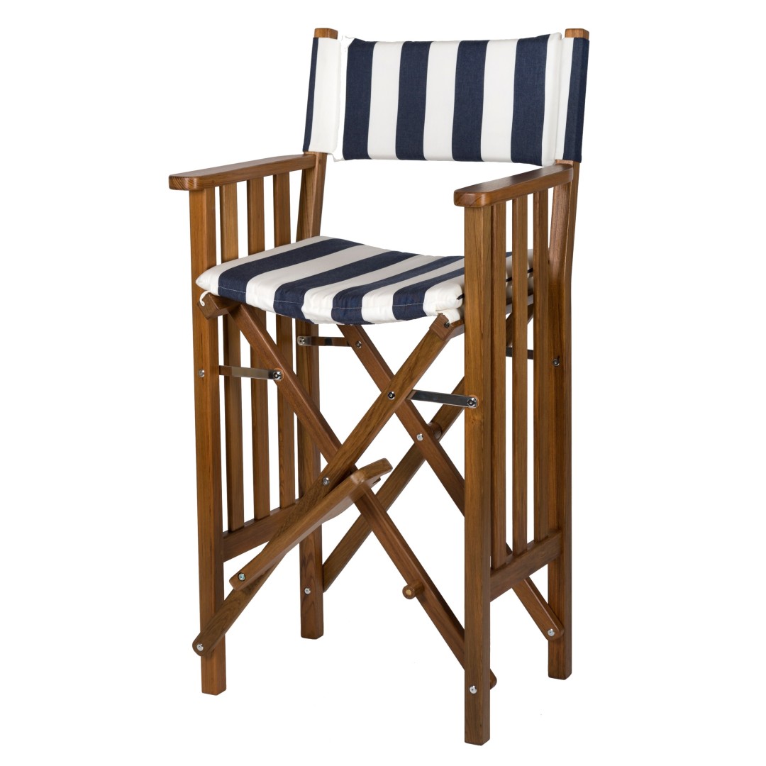 Solid Teak Helmsman Seat II with Navy/White Cushion